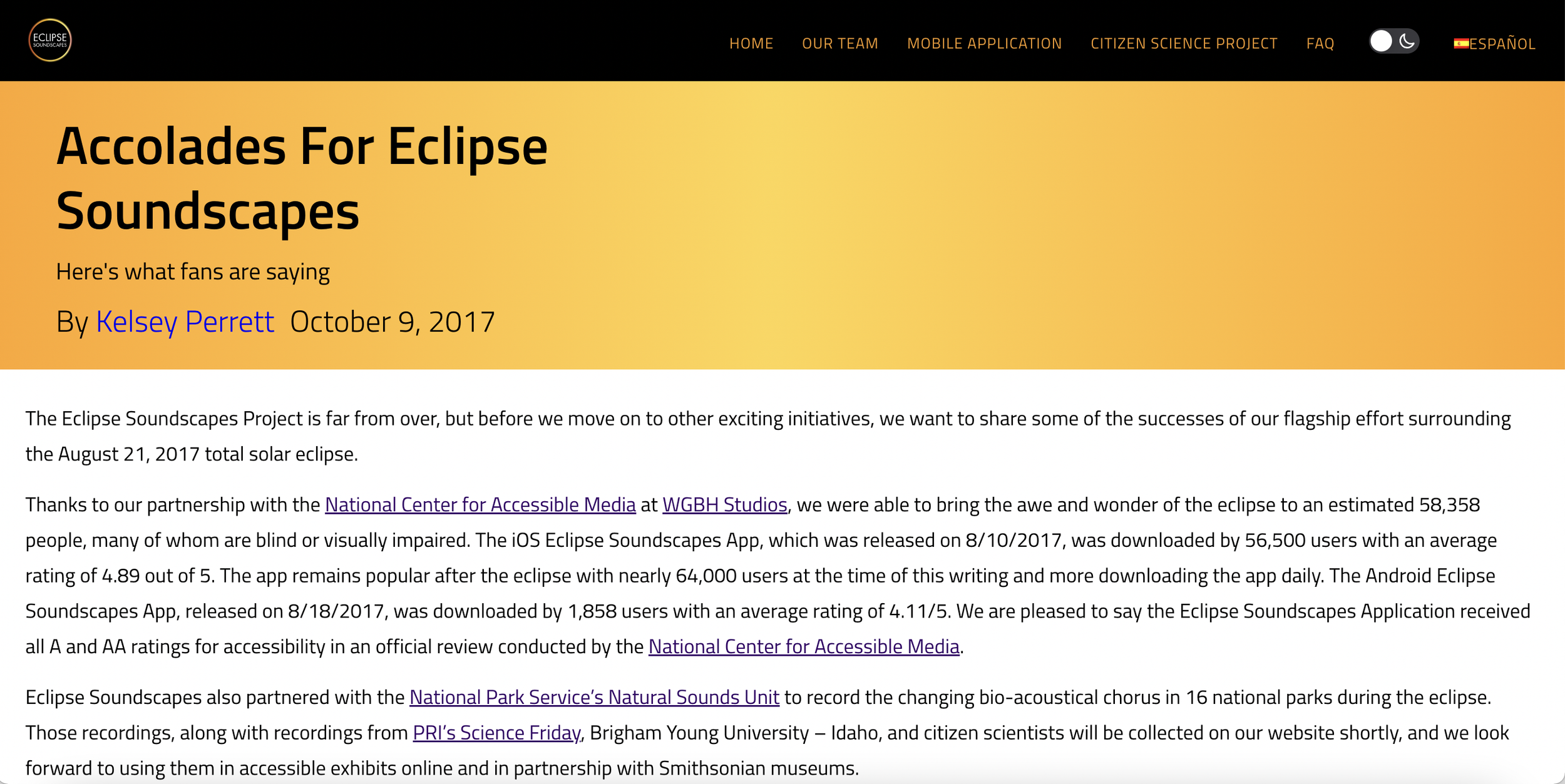 “People who are interested in citizen science, especially those with visual impairments, don’t have access to the necessary information and resources to learn about Eclipse Soundscapes.”